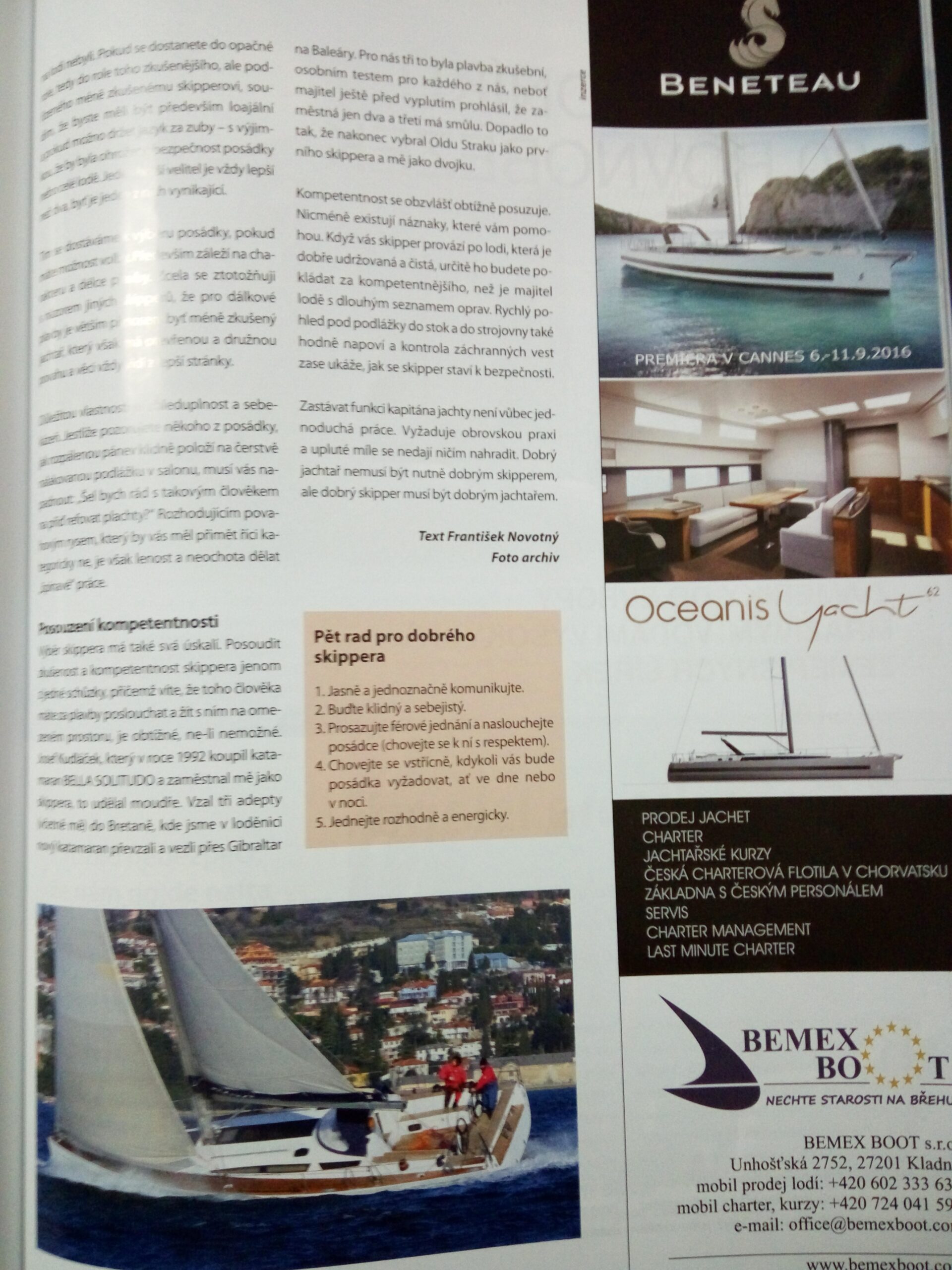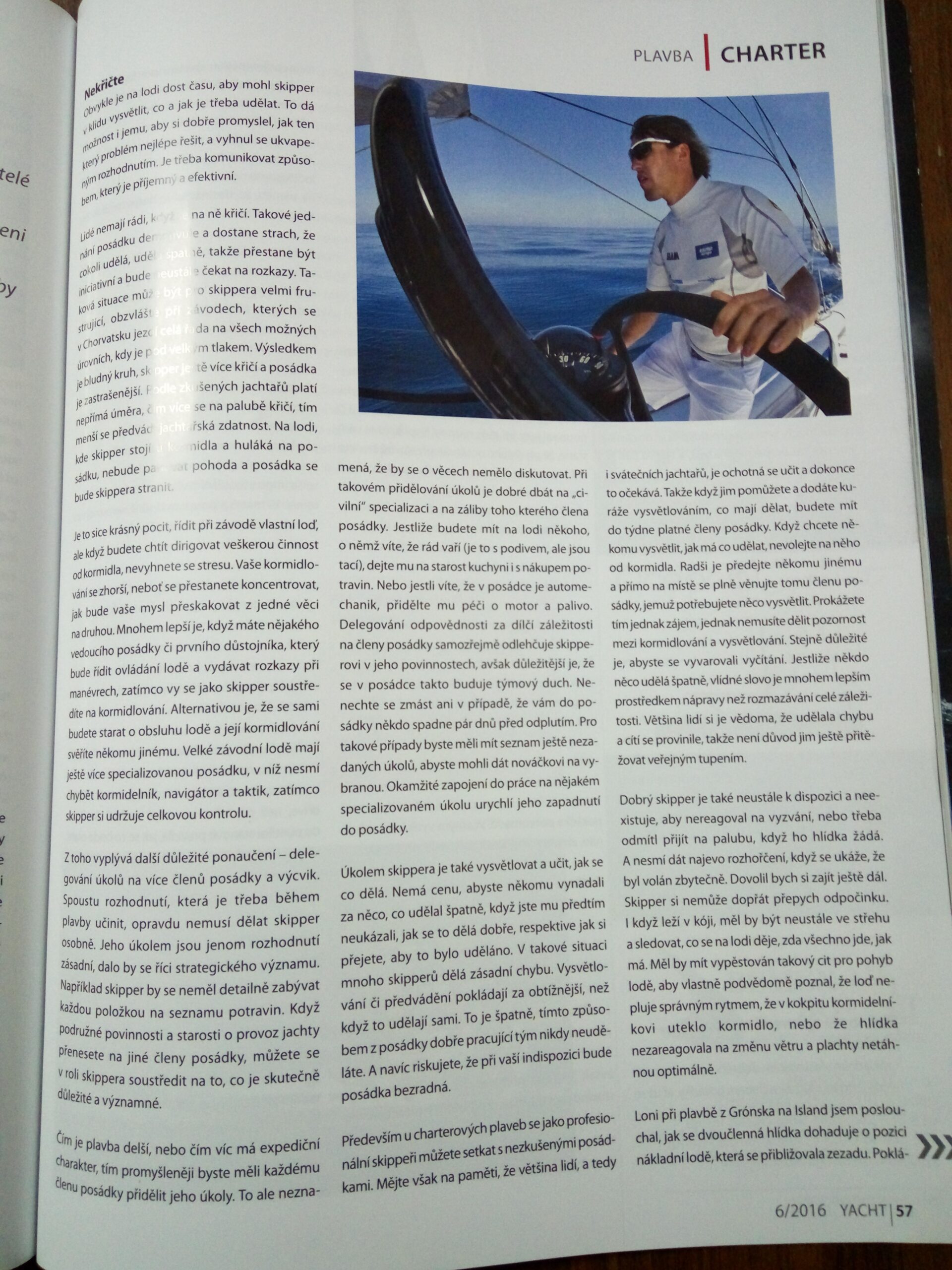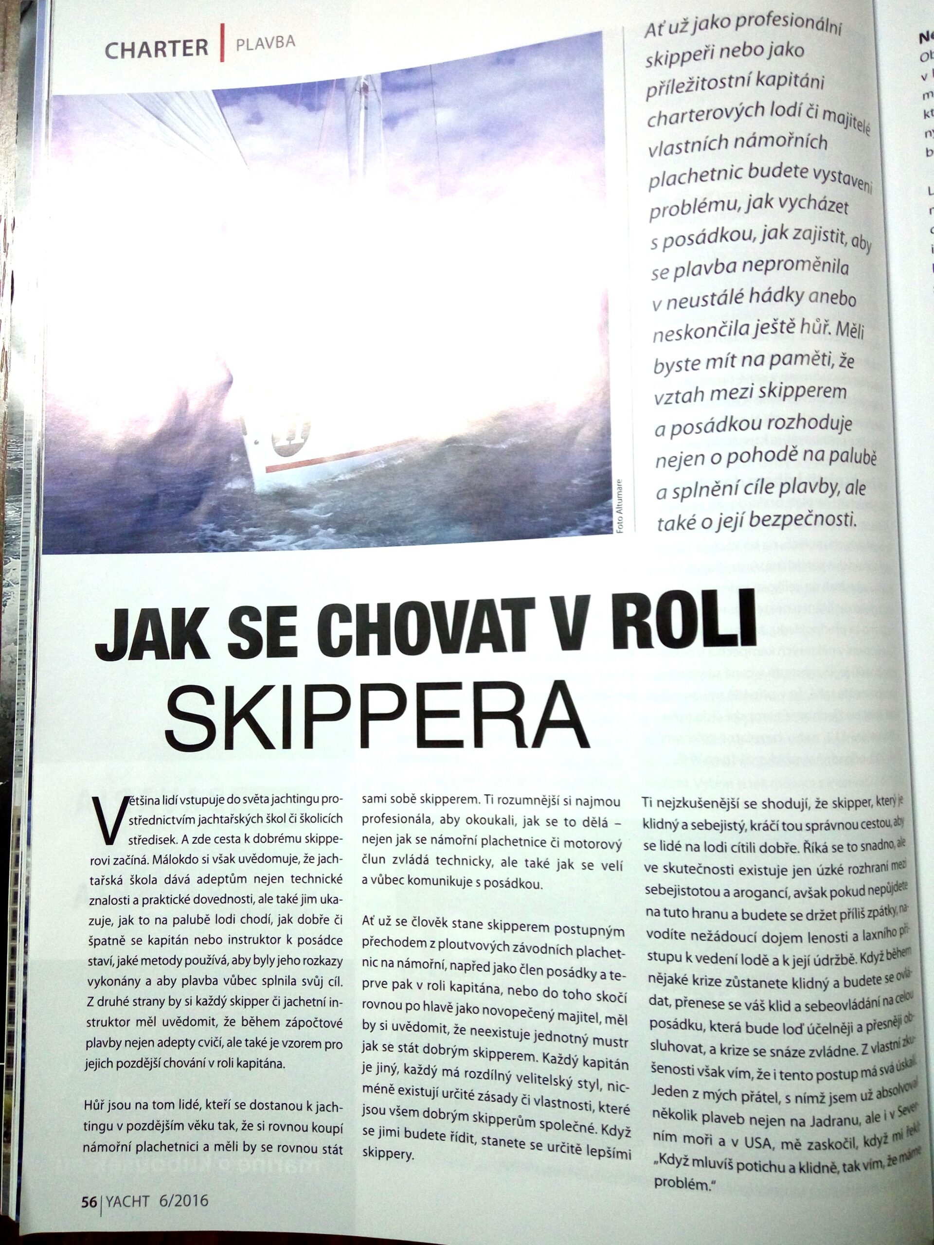 Jak se chovat v roli skippera Výtah z časopisu YACHT 6/2016 str. 01 02 03 04 Zdroj : http://www.yacht-magazine.cz/e-shop/casopisy/6-2016/https://www.facebook.com/casopis.yacht/photos/a.357050677718692.84138.121113014645794/1033596553397431/?type=3&theater